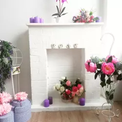 фотофон, диван, кровать, кресло, камин, кирпичная стена, большие окна, светлая студия, гримерка, аренда платьев, вентилятор