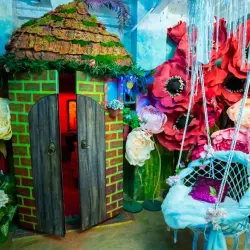 Идеальная локация для проведения фото сессии в стиле фильмов Барби или Феи. Кукольный домик, подвесные качели среди огромных цветов создают мультипликационную и фантастическую атмосферу, а наши стилисты помогут подобрать образ для этой локации.