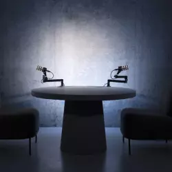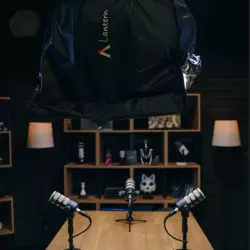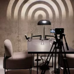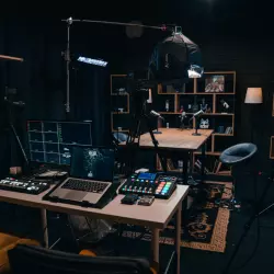 Студия для записи видео и подкастов в темных тонах (черный, графит, серый)