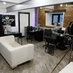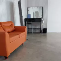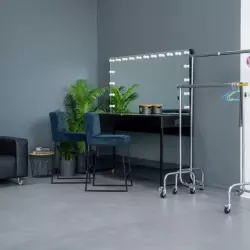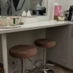 В нашей фотостудии есть гримерное место, где вы найдете все самое необходимое: достаточное количество места, салфетки, воду, фен. А также мы угощаем наших гостей кофе и чаем. Высокие барные стулья в наличии.