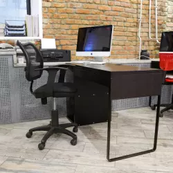 Зал в стиле домашнего кабинета или библиотеки. Широкий выбор расположения модели и вариантов антуража. Можно добавить стеллажи, заменить столешницу и т.д.