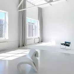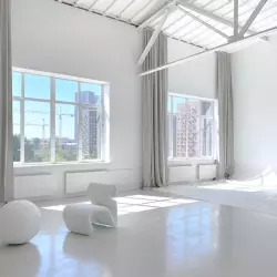 Самый большой (150 кв.м), самый светлый (5 окон из них два мансардных окна в пол) и самый минималистичный зал проекта Prostranstvo 2.0 Марьина Роща.Зал №3 сделан как классическая американская студия – большое, светлое, лофтовое пространство с минимальным количеством декора и с угловой циклорам