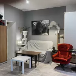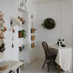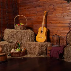 Уютный интерьерный зал со светлыми стенами. Гостиная с диваном, кухня с обеденным столом, большое окно и уютная зона в стиле Рустик с деревянной стеной и сеном. В стоимость аренды включено световое оборудование, пользование гримеркой и аксессуары для съемок. В доступе 6 импульсных источников, 2 источника постоянного света led
