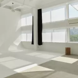 Большой зал с огромным панорамным окном, выходящим на юго-запад, что даёт яркий падающий свет в послеобеденное время, возможность полного затемнения. Большая циклорама 6х6 метров. Возможность установки любого фона из наличия, гримёрное место.