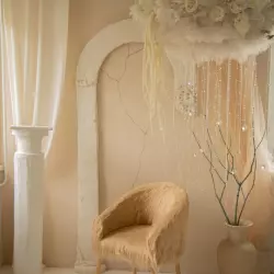 Новый, очень светлый зал с двумя большими окнами на южную сторону. Белая угловая циклорама с подогреваемым полом 4х4 метра. Белая стена, оформленная 3D панелями"волны" и уникальная объёмная стена, создающая эффект колонн.