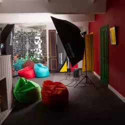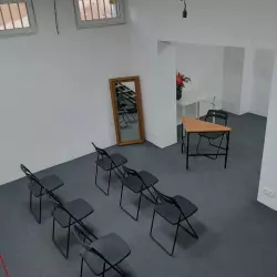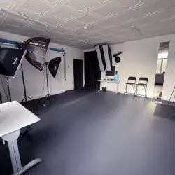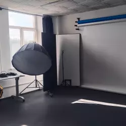 Небольшой зал площадью 35 кв.м. Идеально подходит для небольших мастер-классов,семинаров,репетиций,кастингов и примерок для актеров.В зале есть флипчарт,подвесная система фонов,столы и стулья,собственная гримерка и кулер. Также в зале можно пользоваться Осветительной рамой - кольцом. Пользование пос