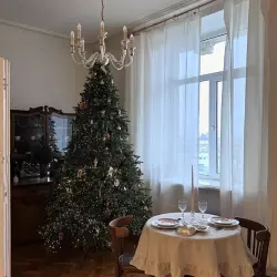 Зал 130 кв.м в стиле стильной квартиры антресоль, в зале есть длинный стол 1х4 метра, диван, кресла, стеллаж, кровать, камин. Высота потолков до 3,5. В стоимость в ходит 2 источника импульсного света Profoto D1-500, и 1 источник постоялого света Led панель (необходимо бронировать заранее)