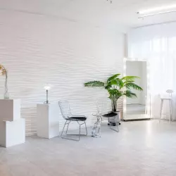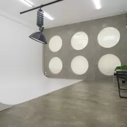 Вспышки света, щелчок затвора камеры, взмах кистей визажистов и стук каблуков по бетонному полу. Здесь каждый ваш жест превращается в искусство, а взгляд — в историю, достойную первых полос. Ведущая концепция зала основана на идеалах современного искусства и моды. Интерьер в духе минимализма с
