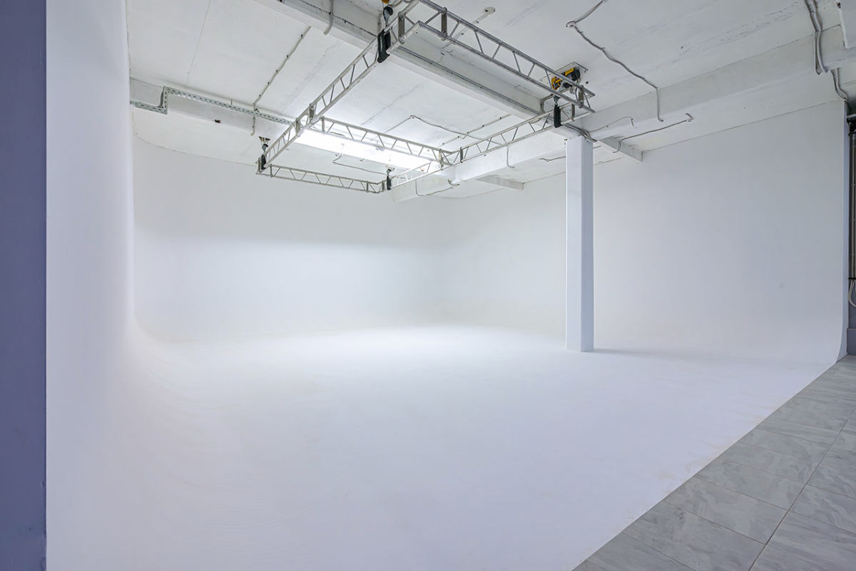 Белый зал площадью 70 кв.м. с белоснежной угловой циклорамой. Зал подойдет для профессиональной съемки каталогов одежды, обуви и аксессуаров, а также имиджевых и частных съемок в минималистичном стиле.