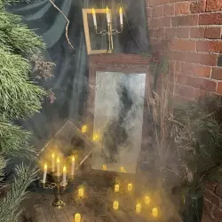 Самый востребованный зал среди наших постоянных фотографов. В одной комнате сразу три интересные зоны: мистический угол с фрагментами зеркал, романтическая зона с кроватью и окном и, любимые многими фотографами, стены с дизайнерской фактурной штукатуркой: белая и коричневая. Система на 3 фона и небо
