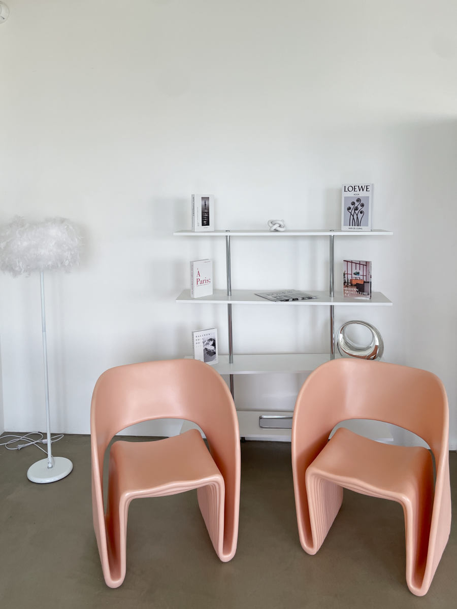Зал SIXTY - зал с белой циклорамой и мебелью в стиле 60х