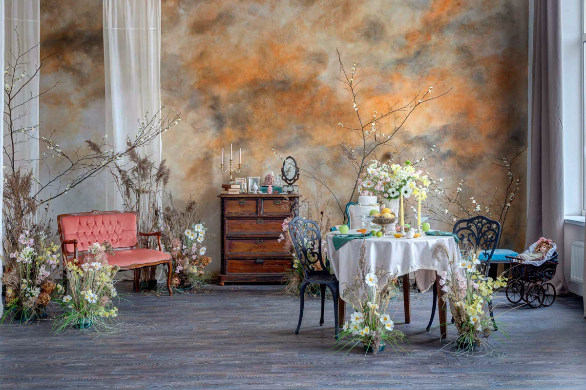 Тёмная комната – глубина и винтажное очарование. Полумрак свечей, антикварная мебель, массивные столы и пианино делают этот зал идеальным для драматичных и мистических образов.