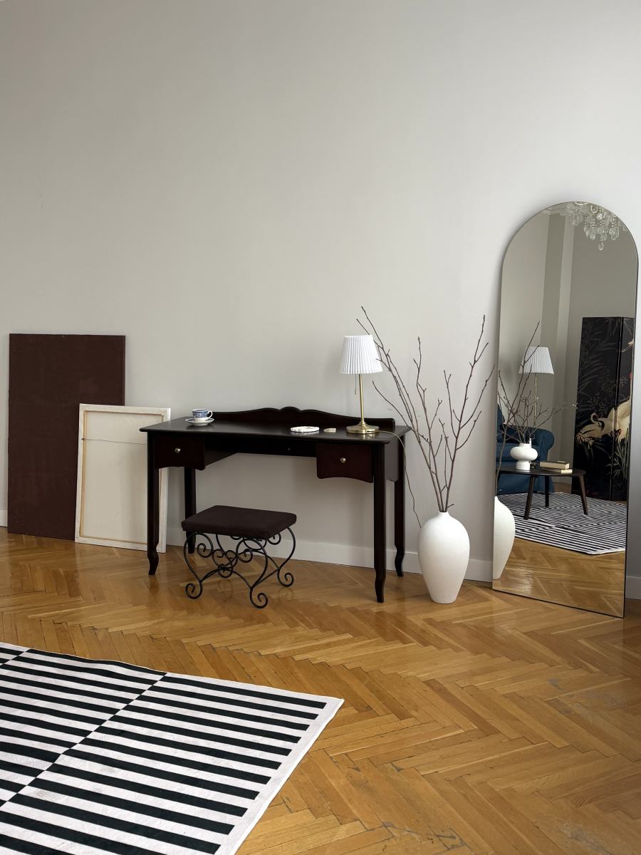 Светлая комната – элегантность и воздушность. Высокие окна, старинные зеркала, лепнина и камин создают атмосферу утончённости и вдохновения.