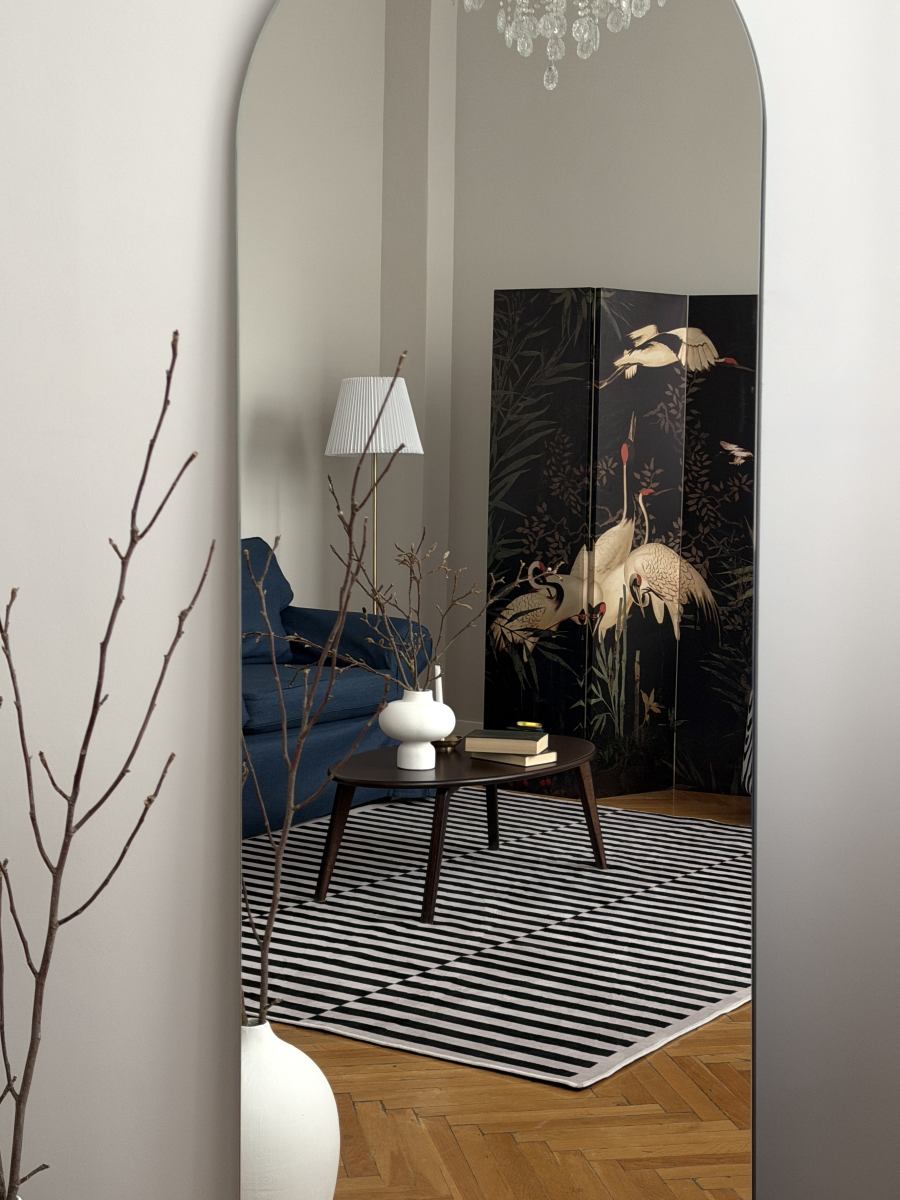 интерьерное зеркало в деревянной оправе ,цикларама(4/4),мягкий молочный