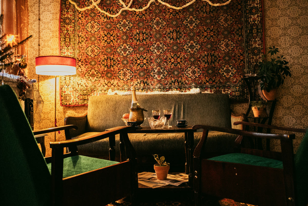 Уютный зал в винтажном стиле с множеством реквизита для создания атмосферных кадров.