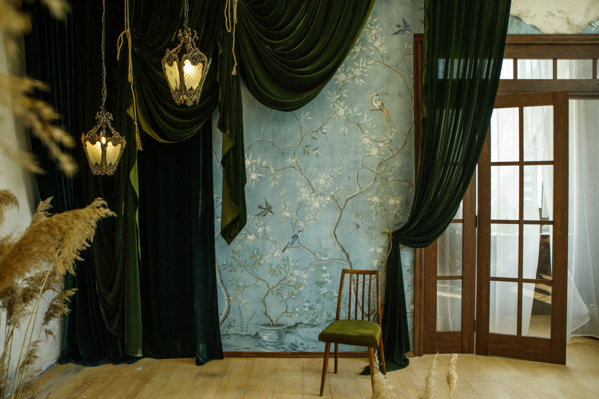 Окна в пол, люстры, вид, пианино, будуар, ванная, фон, мастерская художника, невеста, винтаж, романтика, ткани, зеркало, стеклянная оранжерея
