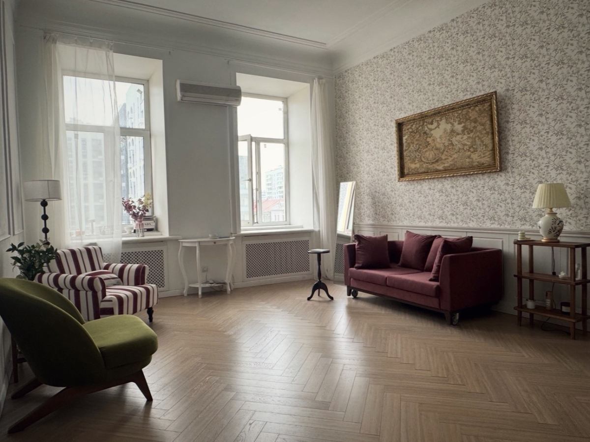 Винтажный зал с трендовыми элементами