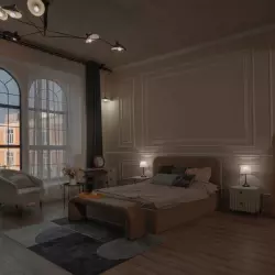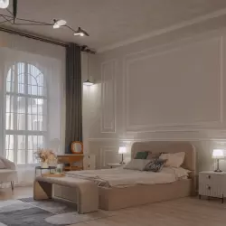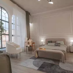 Студия-апартамент в стиле современного арт-деко с деталями рабочего пространства.