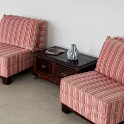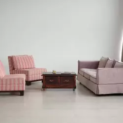 Современный минимализм в светлых тонах с большими панорамными окнами: большой диван-трансформер, кресло, стол из слэба дерева, новогодний интерьер, фотофоны, гримерный стол, естественный свет