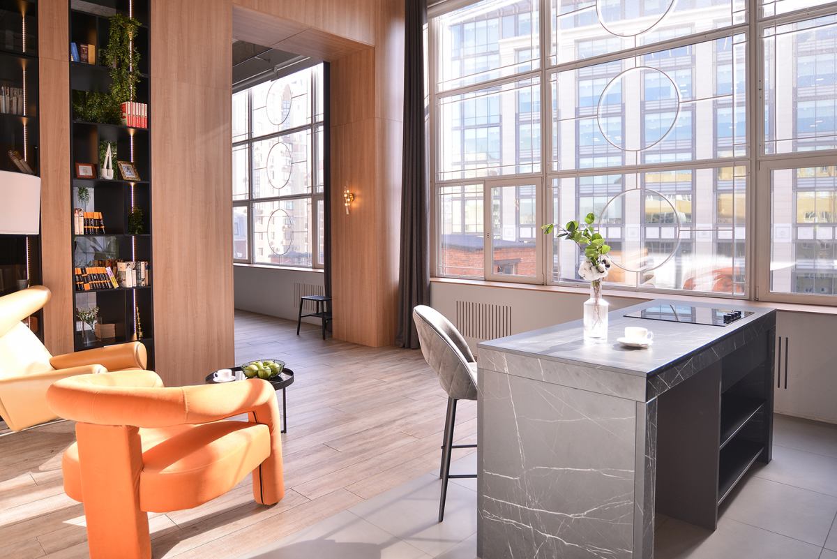 Лофт с высокими потолками и имитацией квартиры.
