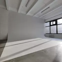 Просторный зал с большой циклорамой 8х7 метров, кондиционированием и удобной гримерной зоной.