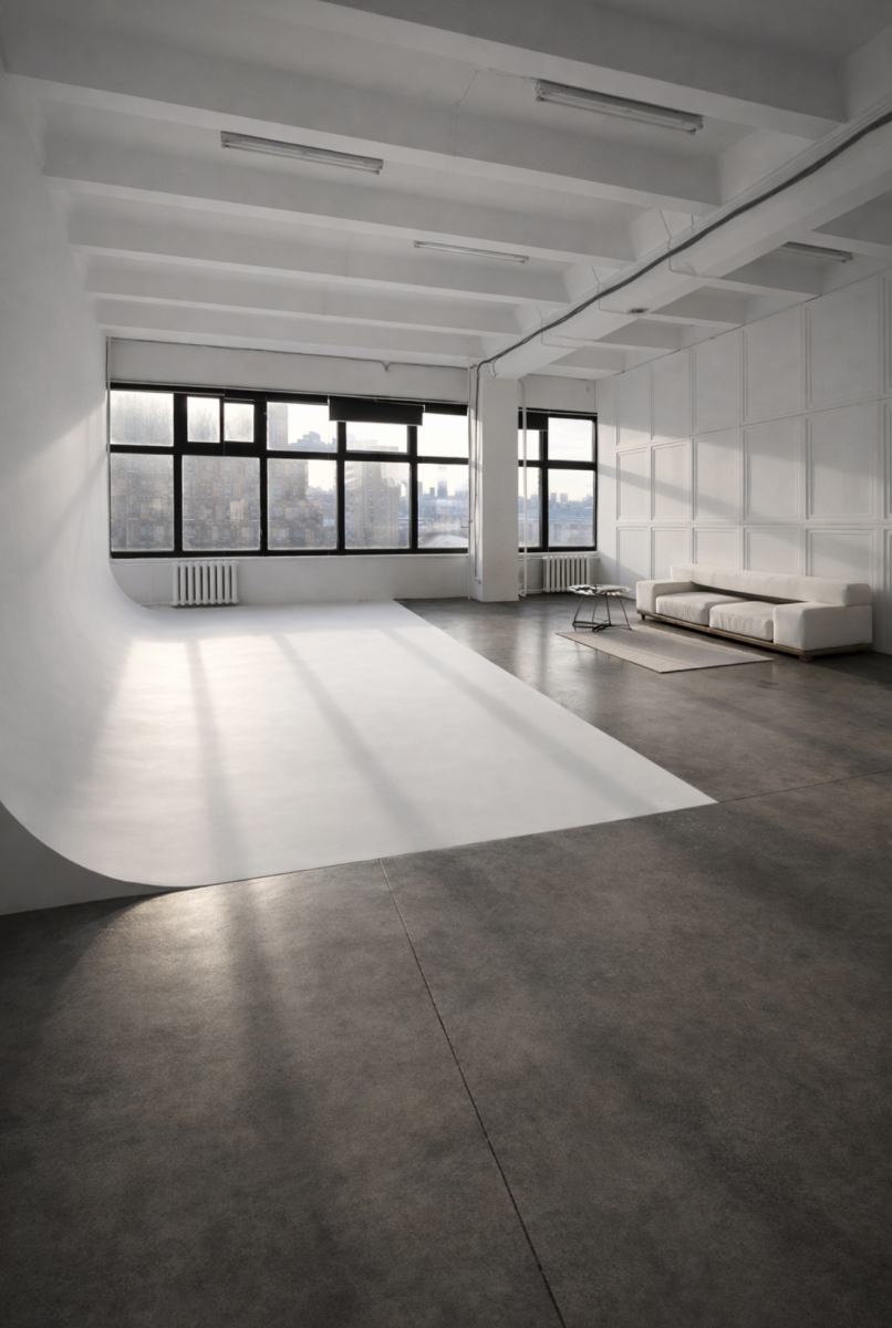 Светлая дизайнерская фотостудия с циклорамой