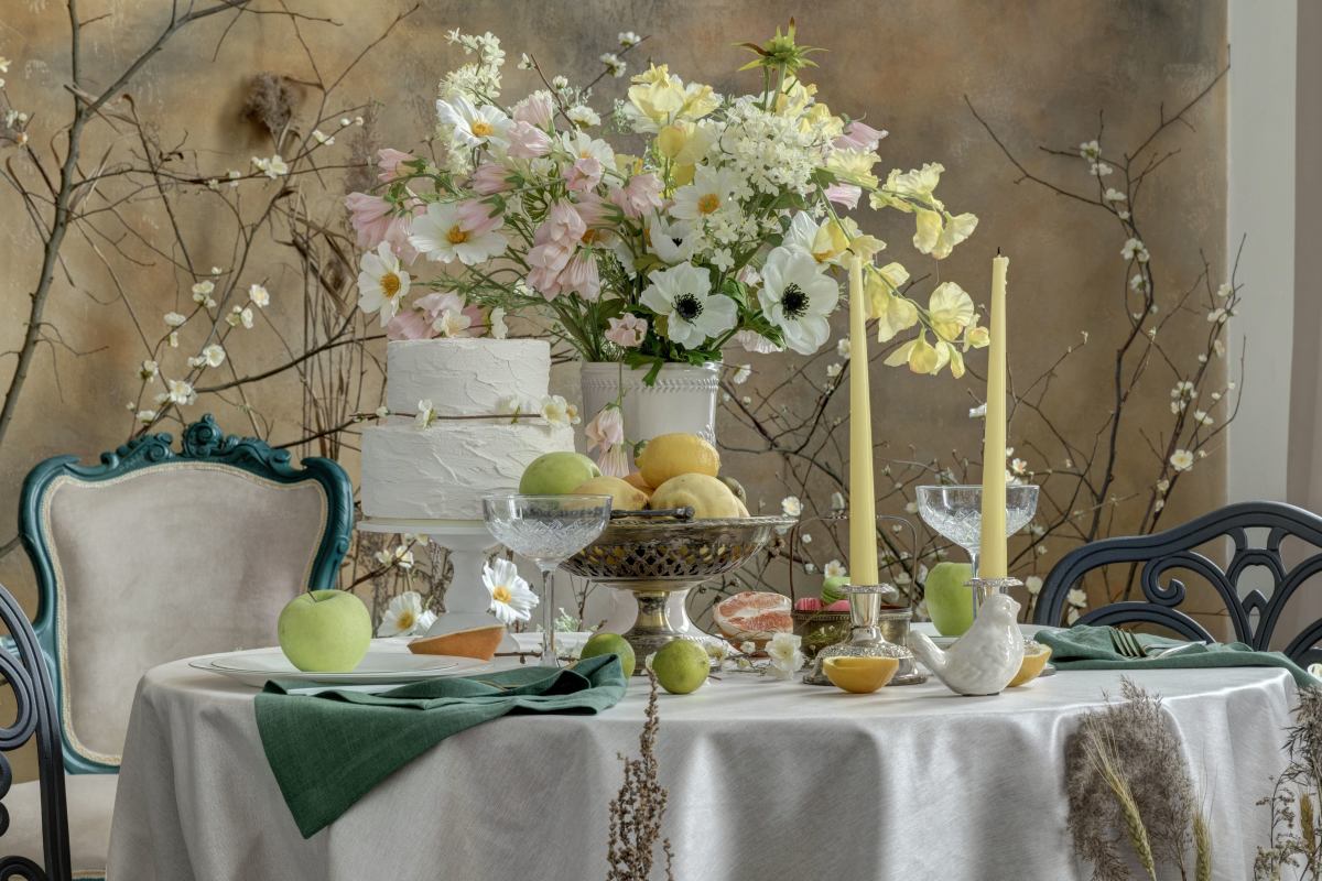 Светлая просторная спальня с цветочной стеной, передвижной кроватью, винтажной люстрой, множеством декора и букетами живых цветов, которые всегда есть в зале.