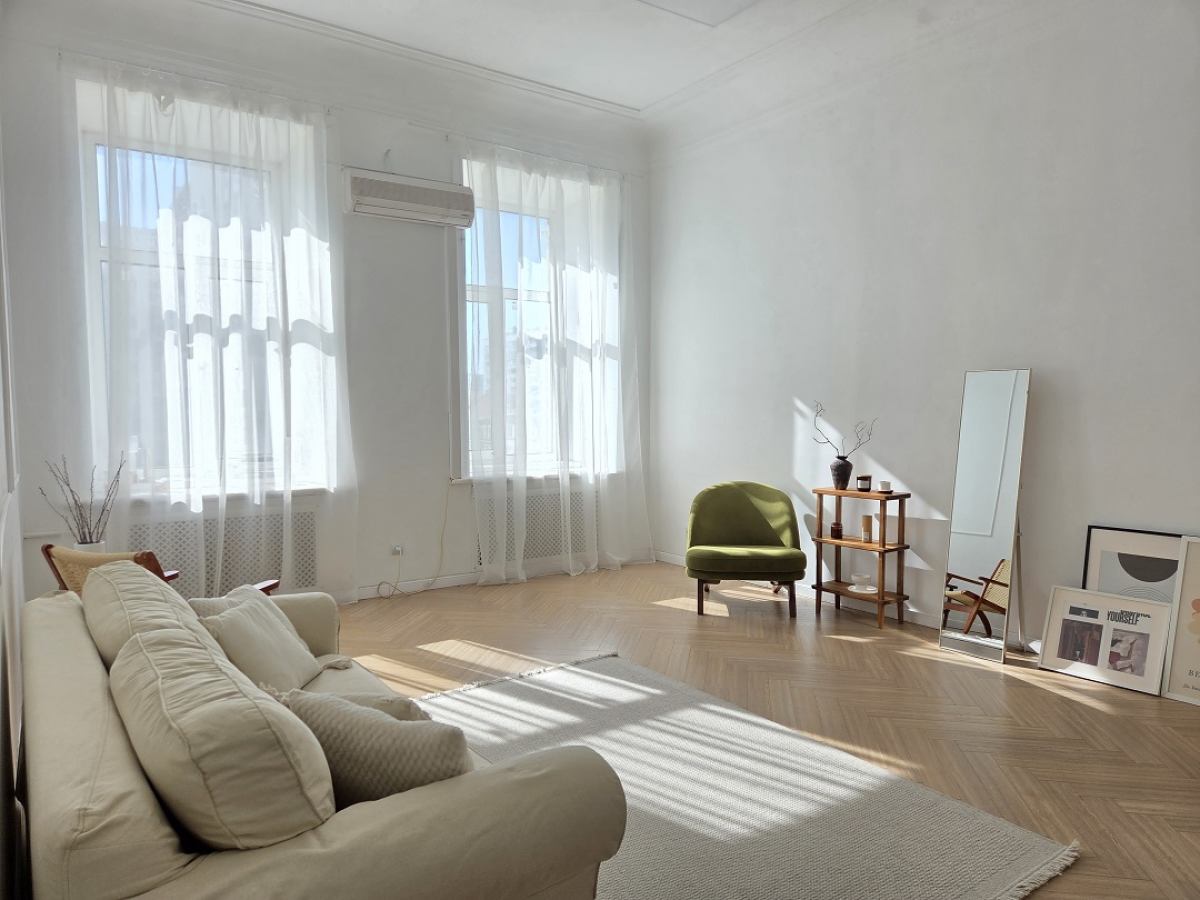 Площадь 95 кв.м., высота потолков 4,5 м.