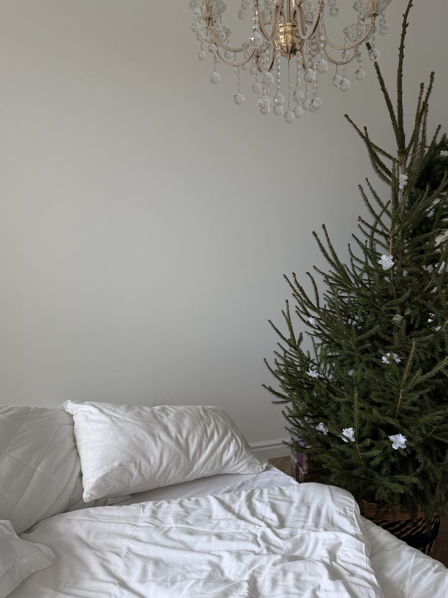 Светлая просторная спальня с цветочной стеной, передвижной кроватью, винтажной люстрой, множеством декора и букетами живых цветов, которые всегда есть в зале.