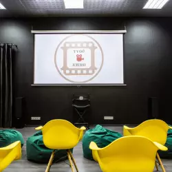 Добро пожаловать в лофтовое пространство ТвоёКино.Здесь можно снимать кино, проводить фотосессии и организовывать мероприятия.Для фотосессий и съёмок на одной из стен расположена зона с фото фонами (белый, черный, хромакей, жёлтый, голубой) шириной 3,55 м.Одна сторона пространства с большими окнами, которые можно закрыть рол шторами.В лофте можно организоват