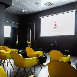 Кинозал с черными стенами для показов фильмов, проведения мастер-классов, занятий и съёмок видео/фото