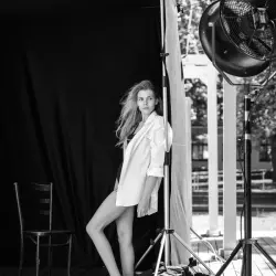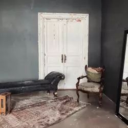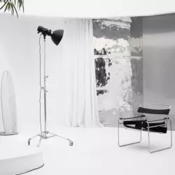 В студии имеется подвесная система с фонами, а так же винтажная поворотная