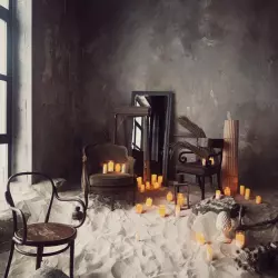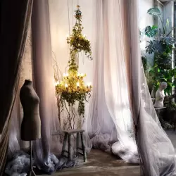 Здесь, среди композиции огромных рам, стеклянной паутины и витражей в ниспадающих мрачных драпировках, ваш образ засияет новыми гранями «Калейдоса»