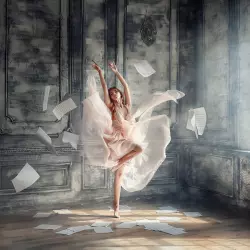 Светлый зал - 7 больших окон на юг и восток. Изящные люстры, светлые стены со следами времени и винтажный пол.
