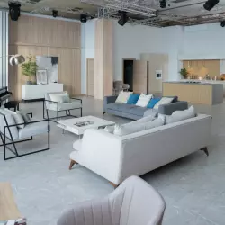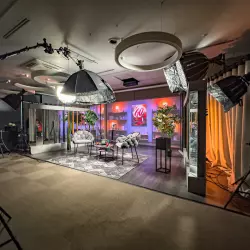 Студия конструктор для фото и видеоcъемок, состоящая из двух современных квартир с кухнями, совмещенными с гостиными.