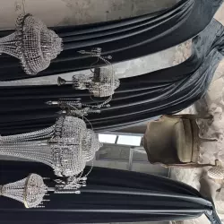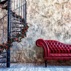 Красное бархатное пространство, с подиумом и роскошной люстрой, идеально для творческих проектов. Старый цирк, театр