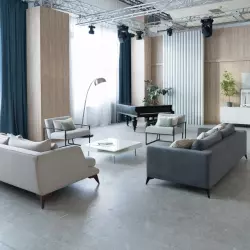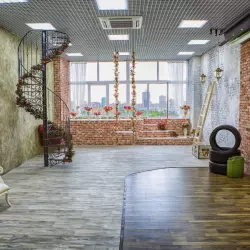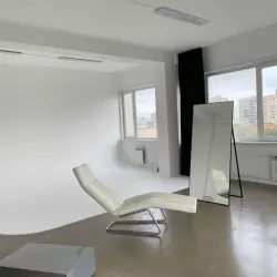 Просторный зал 80 м², светлый с большой циклорамой и мебелью