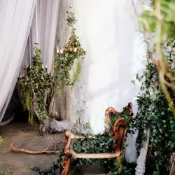 Площадка для проведения уличных фотосессий. Деревянный настил, большая беседка (пергола), большая клетка, качели. Установка шатра Линдберга.