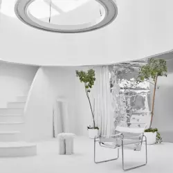 Зал Луна - светлый стильный интерьерный зал с дизайнерской мебелью и панорамными мансардными окнами