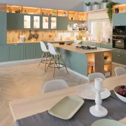 Зал "Кухня" - светлый, стильный, интерьерный зал в скандинавском стиле с полностью функциональной кухней: варочная панель, духовой шкаф, холодильник, а также мобильный остров с встроенной рабочей варочной панелью.