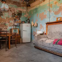 Атмосферное творческое пространство "Треш". 2 этажа, лестница, кафель, старые стены, бетонный пол, советская квартира, телевизоры! Заброшенная квартира, стиль СССР.