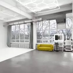 Просторный зал 80 м², светлый с большой циклорамой и мебелью