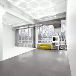 Профессиональное пространство с большой белой циклорамой и фермой.