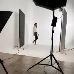 Просторный зал с большой циклорамой 8х7 метров, кондиционированием и удобной гримерной зоной.