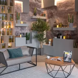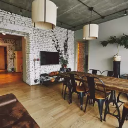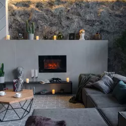 Брутальный, минималистичный интерьер с каменными и бетонными фактурами.
