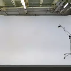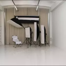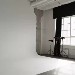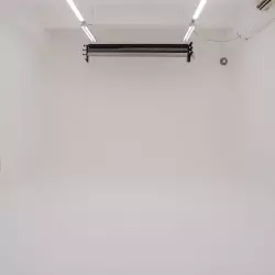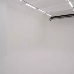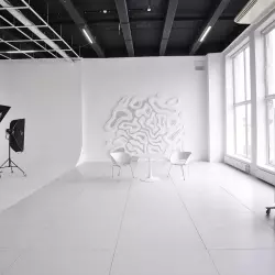 Недорогая белая циклорама, Полностью белый зал (стены, пол, потолок). Зал экранирован от эха для записи чистого звука.