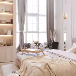 Локация с большой гардеробной комнатой в пудровых оттенках. Мечта любой девушки!
