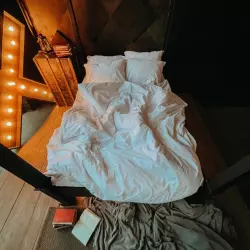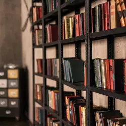 Огромный окна в пол, большая библиотека, кровать на подиуме