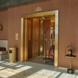 Большая угловая циклорама 7х7 м., красный винтажный лифт