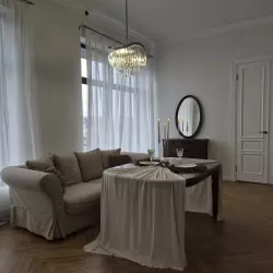 Уютный интерьерный зал со светлыми стенами. Гостиная с диваном, кухня с обеденным столом, большое окно и уютная зона в стиле Рустик с деревянной стеной и сеном. В стоимость аренды включено световое оборудование, пользование гримеркой и аксессуары для съемок. В доступе 6 импульсных источников, 2 источника постоянного света led